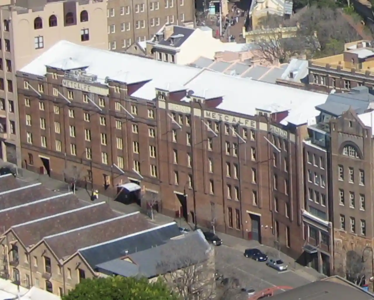 The Metcalfe Bond Stores is a heritage-listed former bond store and warehouse and now shops and offices located at 68–84 George Street in the inner city Sydney suburb of The Rocks in the City of Sydney local government area of New South Wales, Australia. It was built from 1912 to 1916. It is also known as New Metcalfe Bond Stores. The property is owned by Property NSW, an agency of the Government of New South Wales. It was added to the New South Wales State Heritage Register on 10 May 2002. Read more on Wikipedia