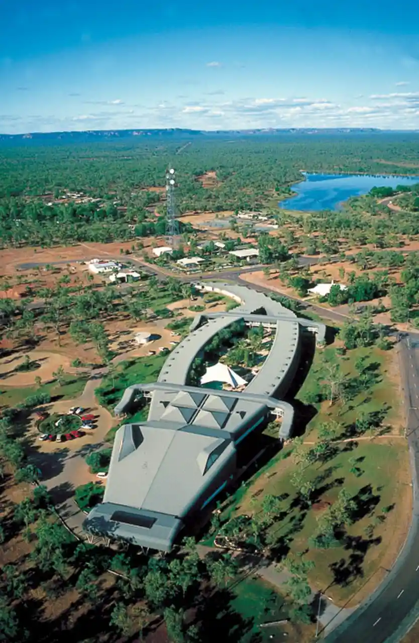 The Gagudju Crocodile Hotel, also known as Kakadu Crocodile Hotel or just the Croc Hotel is a 3.5 star hotel located in Jabiru, Northern Territory, within Australia's Kakadu National Park. Owned by the Indigenous clans of the Gaagudju people, it was the first major tourism development in the National Park and is notable for its unique design in the shape of a crocodile. Since 2014, the hotel has been operated by the Accor group under the Mecure brand. Read more on Wikipedia