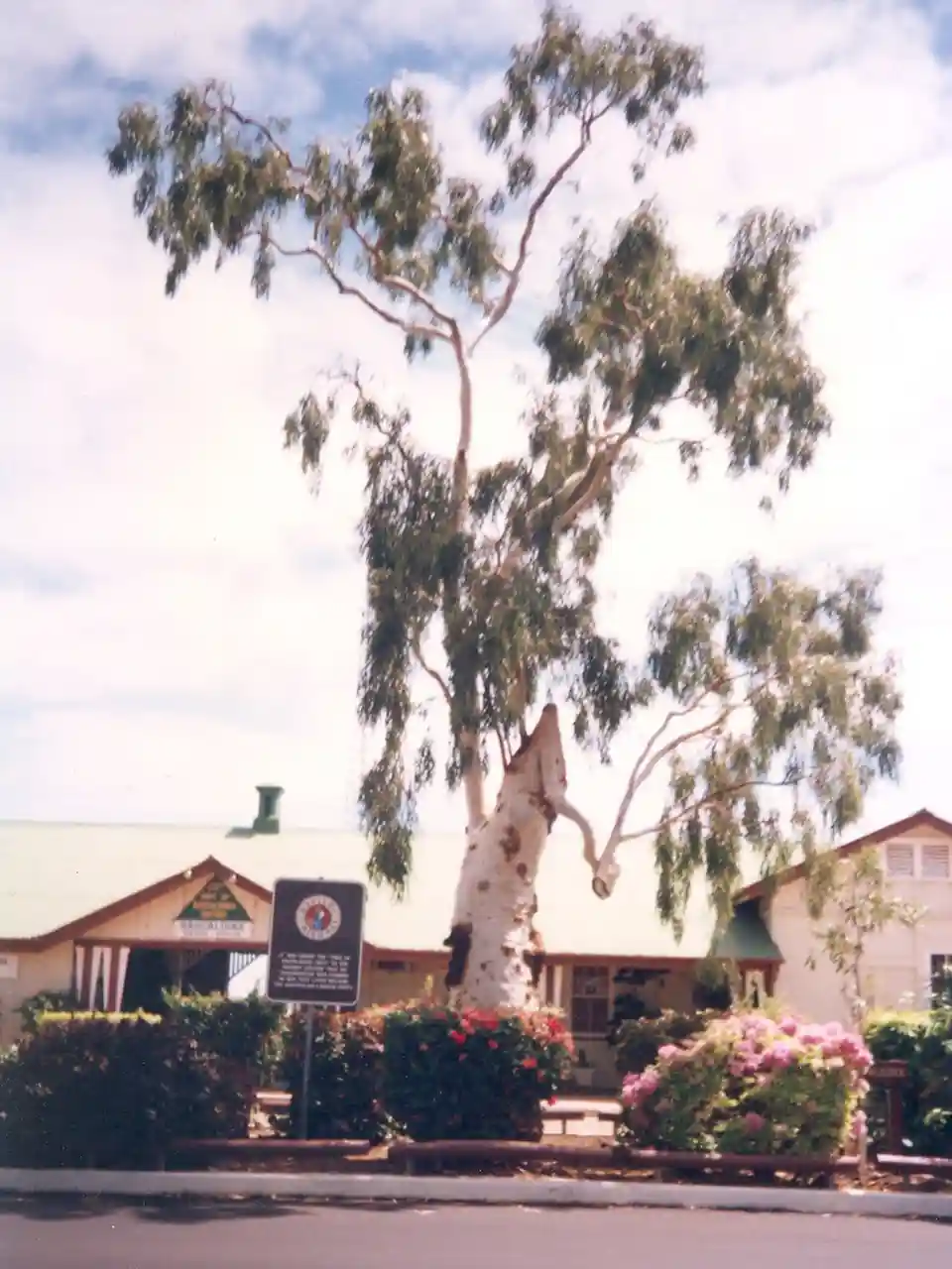 The Tree of Knowledge was a heritage-listed tree in Oak Street, Barcaldine, Barcaldine Region, Queensland, Australia, that was poisoned and killed in 2006. It was a 200-year-old Corymbia aparrerinja ghost gum. It was added to the Queensland Heritage Register on 21 October 1992. Read more on Wikipedia