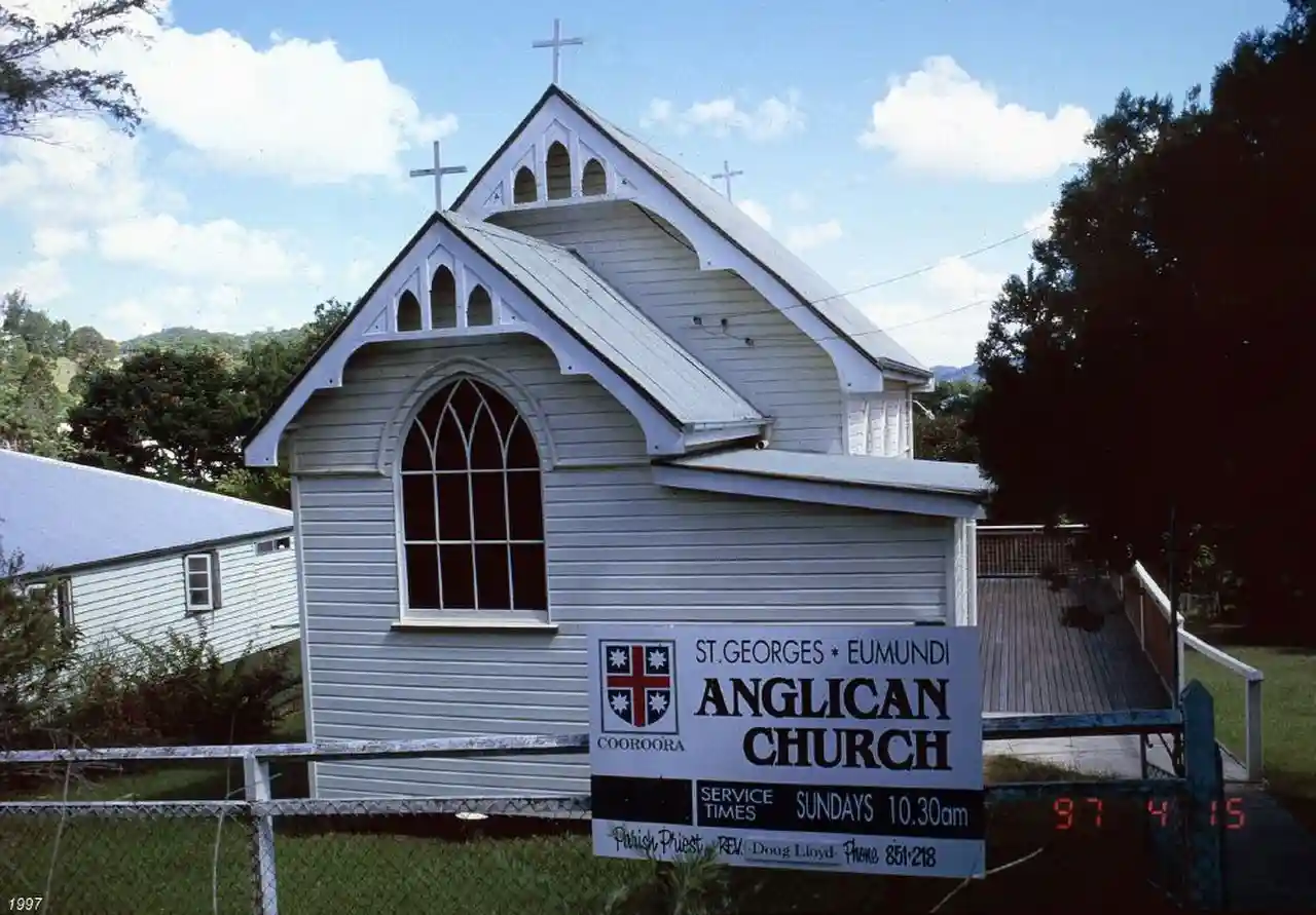 St George's Anglican Church is a heritage-listed church at 15 Cook Street, Eumundi, Sunshine Coast Region, Queensland, Australia. It was designed and built by J Carby in 1912. It is also known as St George's Church of England. It was added to the Queensland Heritage Register on 24 September 1999. Read more on Wikipedia