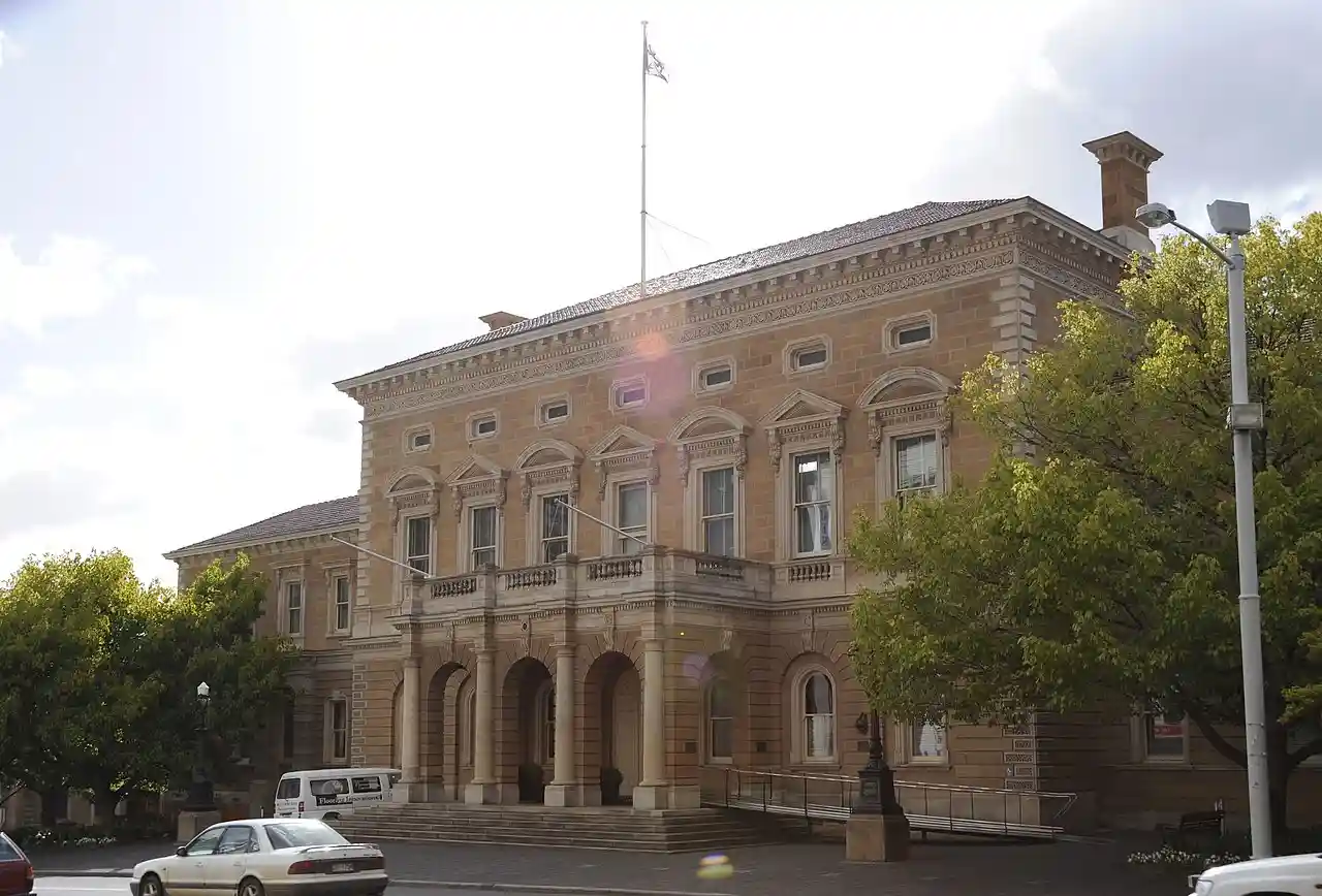 Hobart Town Hall is a landmark sandstone building which serves as seat of the City of Hobart local government area, hosting council meetings as well as acting as public auditorium that can be hired from the council. It is also open to periodic public tours, featuring its ornate Victorian auditorium and the Town Hall organ which has been in use since 1870. Read more on Wikipedia