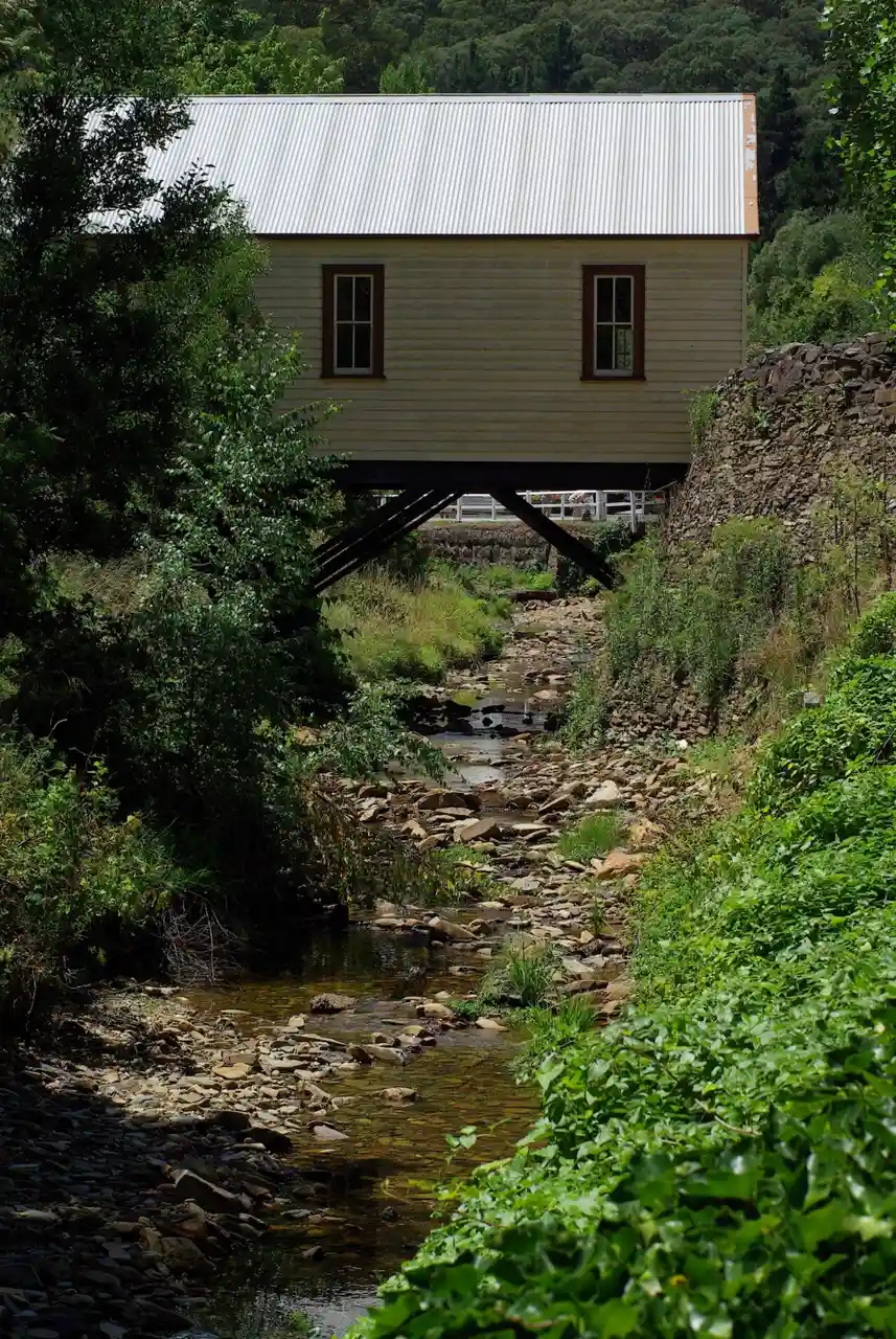 The Former Fire Station in Walhalla, Baw Baw Shire, Victoria spans over Stringer's Creek. It is listed on the Victorian Heritage Register. Read more on Wikipedia