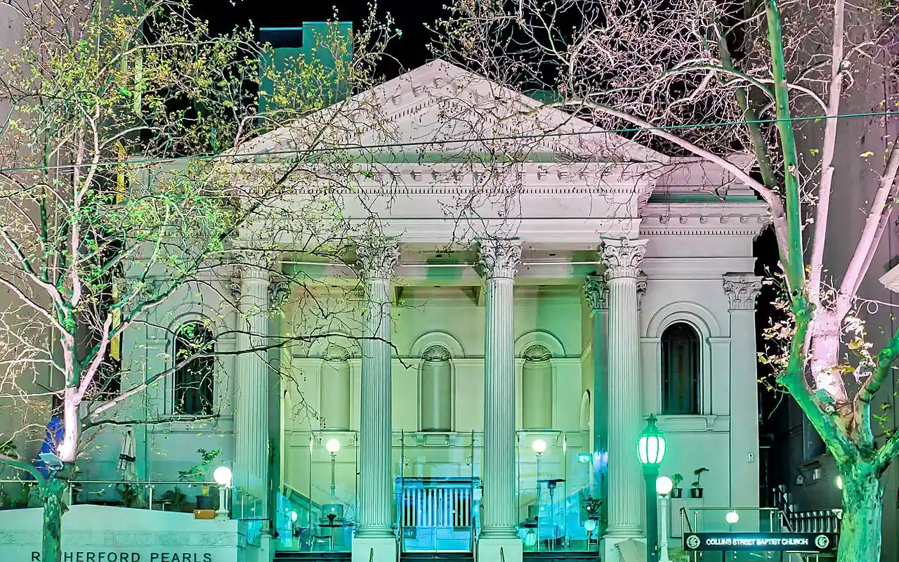 Collins Street Baptist Church is a Baptist church, located at 174 Collins Street, Melbourne, Victoria, Australia. The church is affiliated with the Australian Baptist Ministries. Founded in 1843, it is the oldest Baptist church in Victoria and the oldest continuous Baptist church in Australia. Read more on Wikipedia