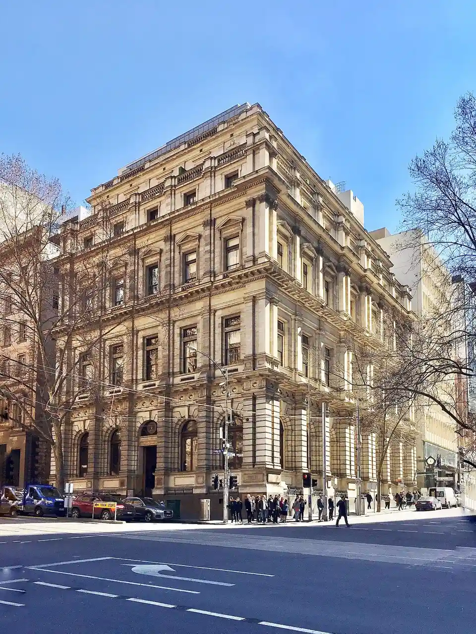 The former Bank of Australasia Headquarters is an historic bank headquarters in Renaissance Revival style located on the corner of Queen Street and Collins Street, the traditional heart of Melbourne's financial precinct, with 19th Century banks on three corners. Read more on Wikipedia