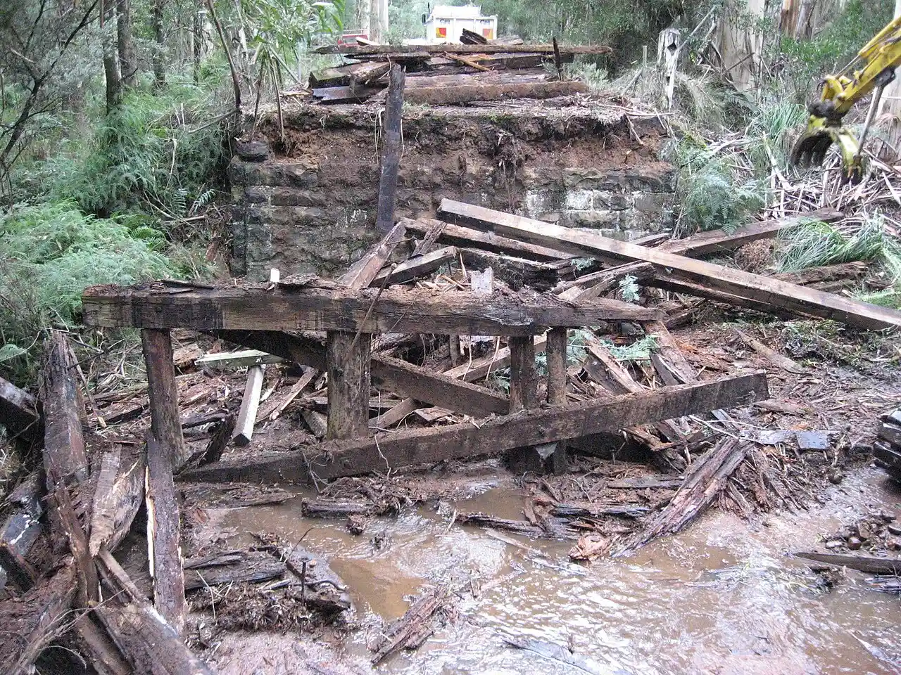 Wilks Creek Bridge is a former timber and bluestone road bridge on the Yarra Track, located just off the Black Spur route, between Narbethong and , Victoria, Australia. Read more on Wikipedia
