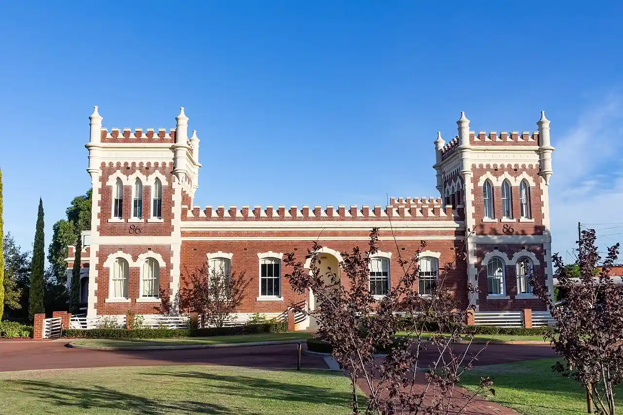 The Albany Bell Castle is a heritage-listed building at the corner of Guildford Road and Thirlmere Road in the Perth suburb of Mount Lawley. It was built in 1914 for the catering company Albany Bell Ltd as a factory to manufacture cakes and confectionery for its eleven tearooms in Perth and three in Kalgoorlie and Boulder.Tamblyn, M. Peter Albany Bell Entry in Australian Dictionary of Biography The site chosen was of land two miles (3 km) from Perth, with natural springs that could supply 100,000 gallons of fresh water per day. The company's founder, Peter Albany Bell, used ideas derived from the Cadbury factory in Bournville United Kingdom, to incorporate superior working conditions and amenities for employees.State W.A. Heritage Register #2429–Albany Bell Castle at Heritage Council of Western Australia (with additional references) Read more on Wikipedia