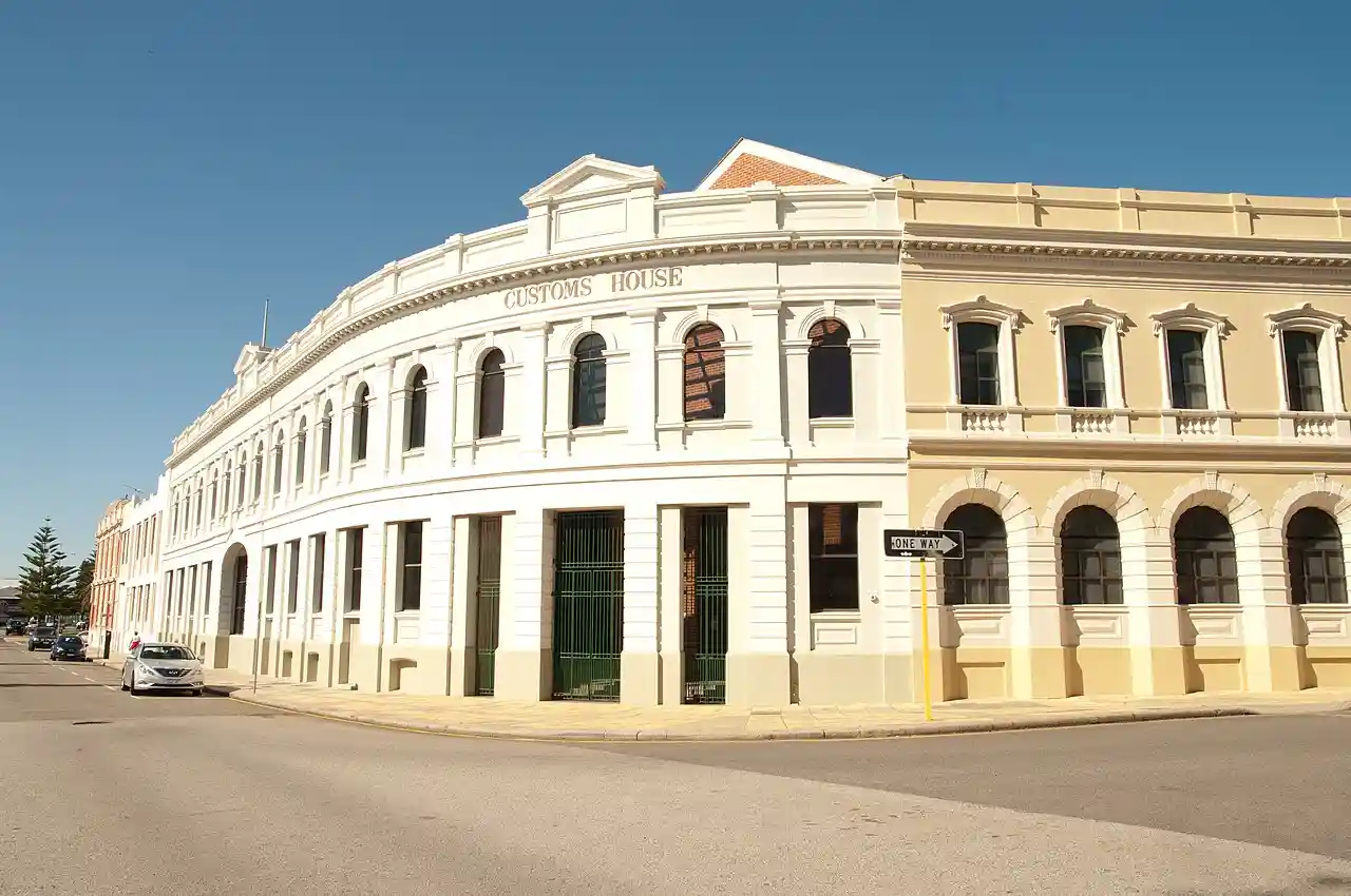 Customs House and former Falk & Company Warehouse is an historic three-storey brick building located in , Western Australia. The building has a number of prominent ornate façades on Phillimore Street between Henry and Pakenham Streets. It houses the Fremantle regional office of the Australian Customs and Border Protection Service, Centrelink, and a number of other Australian Government offices. Read more on Wikipedia