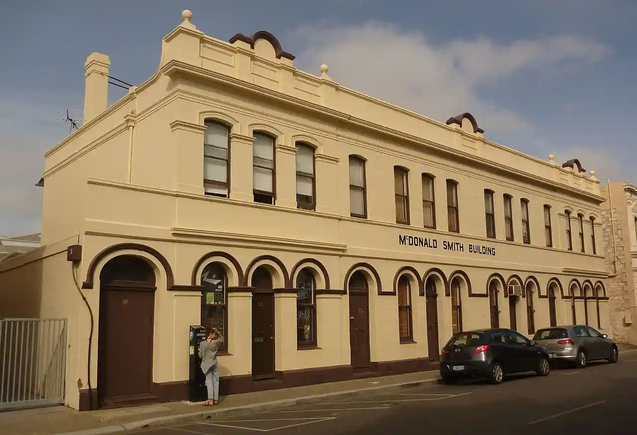 The McDonald Smith Building is a heritage building in the port city of Fremantle, Western Australia. The building dates from the gold rush boom period in the late nineteenth and early twentieth centuries and is of historic significance. Read more on Wikipedia