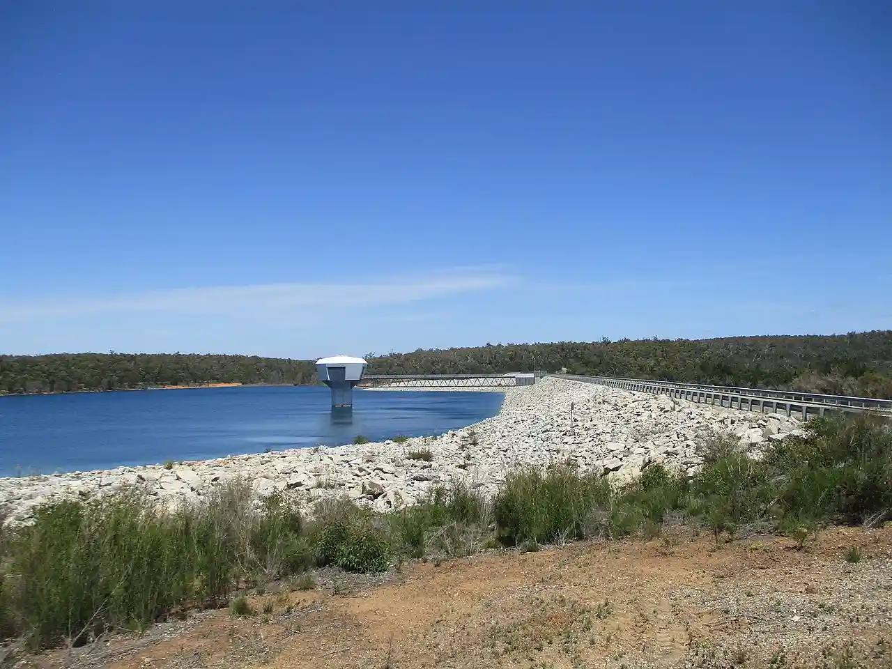 North Dandalup Dam is a dam in Western Australia. It is located south of Perth in the Darling Scarp, which forms the western border of the Darling Ranges. Constructed in 1994, it was opened by the then state Premier Richard Court in October of that year. It was the final project in a dam-building scheme that also includes the Victoria and Conjurunjup Dams. Read more on Wikipedia