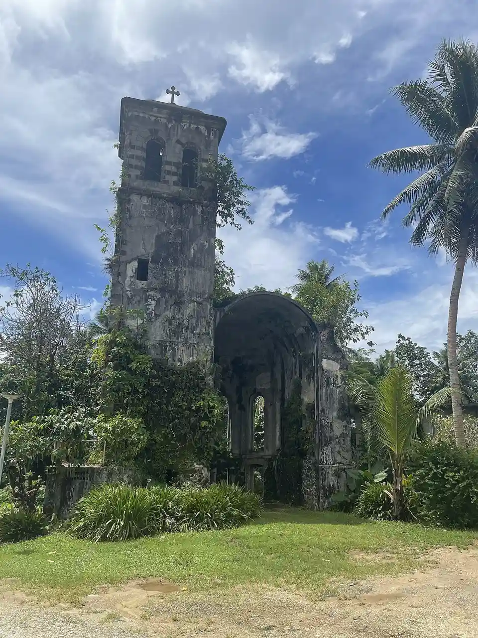 The Catholic Belltower (also known as the Cathedral of Ponape Belltower and Ponape Belltower) is a historic tower at the Catholic Mission in Kolonia, on the island of Pohnpei in the Federated States of Micronesia. The belltower and adjoining masonry apse are all that remain of a church built in 1909 by German and Spanish Capuchin missionaries, when Ponape and the other Caroline Islands were administered as part of German New Guinea. The rest of the church was destroyed during the fighting of World War II. The tower is square, rising to a height of , and the shell of the apse is about in height. The tower has a foundation of basalt rock and lime mortar, and is constructed out of concrete bricks. Read more on Wikipedia