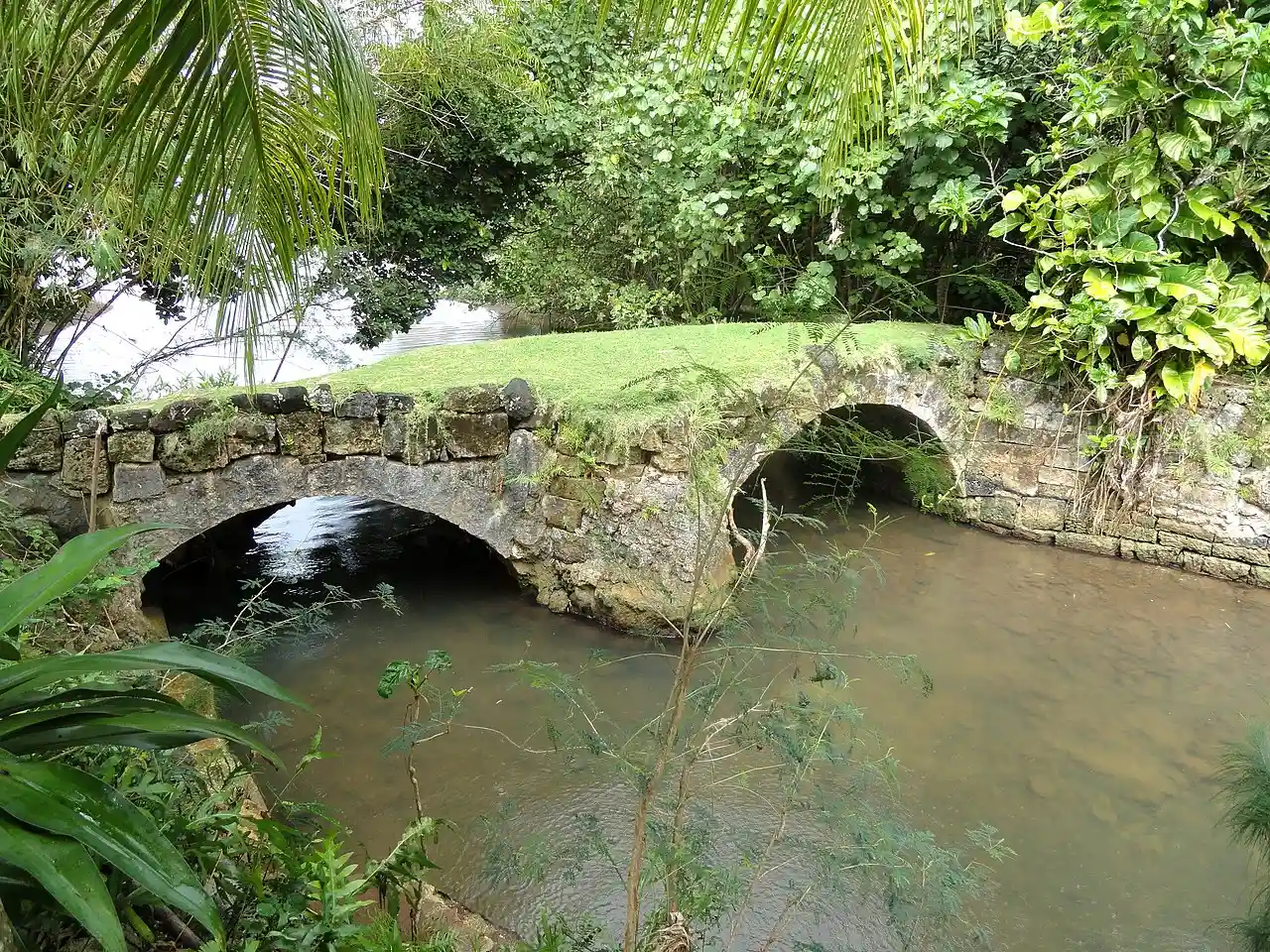The Taleyfac Spanish Bridge, known locally as Taleyfac Tolai Acho, is a historic stone arch bridge off Guam Highway 2 in Agat, Guam. It crosses the Taleyfac River with two stone arches; it is long and wide. It originally had wood timber flooring, which has long ago been replaced. One of the arches has been damaged by the removal or loss by erosion of some of its stones. Read more on Wikipedia