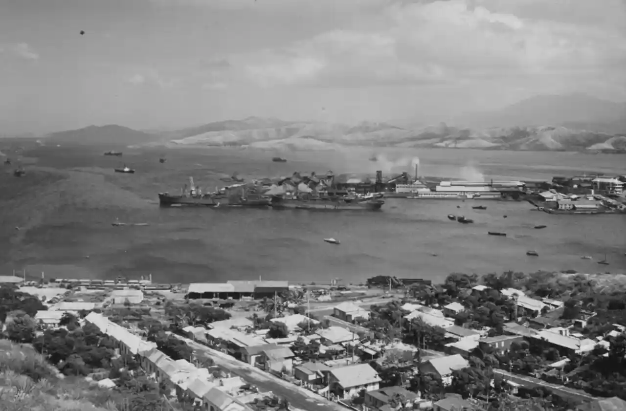 Naval Base Noumea was a major United States Navy sea and air base at Nouméa, New Caledonia. Naval Base Noumea was built at Noumea Harbor. Noumea was picked for a Naval Base as it was beyond the range of Japanese land-based planes. Noumea is on the east side the Coral Sea, from Brisbane, Australia. The base was built during World War II to support the many ships and aircraft fighting and patrolling in the South West Pacific theatre of war as part of the Pacific War. Naval Base Noumea had anchorage for large ships. Noumea was protected against submarine attack by a ring of islands and Naval minefields. At its peak 50,000 troops were stationed at Naval Base Noumea. New Caledonia has been a colony of France since 1853. Noumea is the capital City of New Caledonia on the southwest end of the island. On November 8, 1942, US Navy South Pacific headquarters moved to Noumea. Read more on Wikipedia