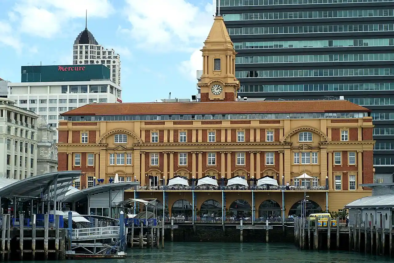 The Auckland Ferry Terminal, also called the Downtown Ferry Terminal, is the hub of the Auckland ferry network, which connects the Auckland CBD with suburbs in North Shore, West Auckland, and South Auckland, and islands in the Hauraki Gulf. The terminal is on the Auckland waterfront, at the north end of Queen Street, across Quay Street from the Waitematā railway station, which is the hub for local buses and trains. Read more on Wikipedia