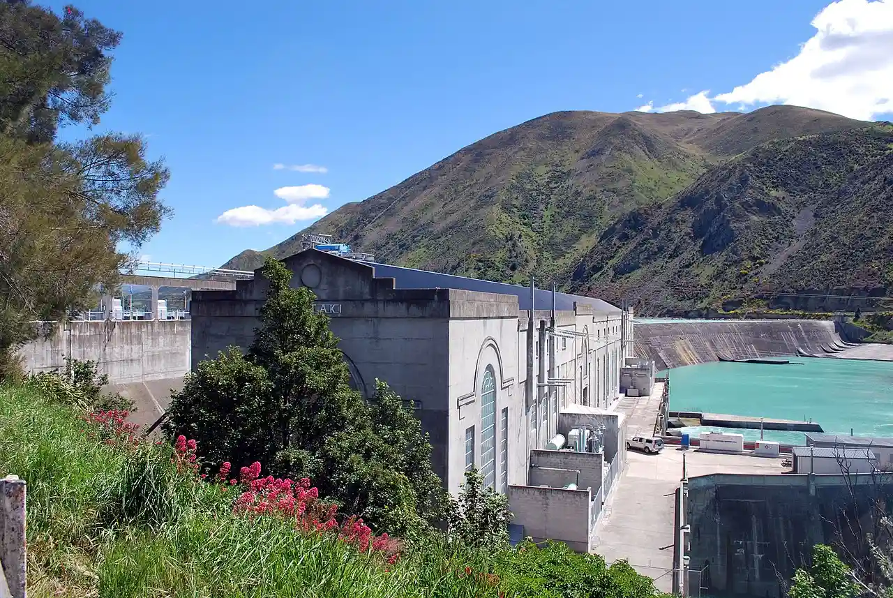 The Waitaki Dam is one of eight hydroelectric power stations which form the Waitaki hydroelectric scheme on the Waitaki River in the Canterbury Region of New Zealand. The dam was the first of three to be built on the Waitaki River and was constructed without earthmoving machinery; over half a million cubic metres of material was excavated, almost entirely by pick-and-shovel. The Waitaki Dam's construction was followed by the development of Aviemore Dam and Benmore Dam, and importantly, every dam built in New Zealand since the Waitaki has benefited from lessons learned during its construction. Read more on Wikipedia